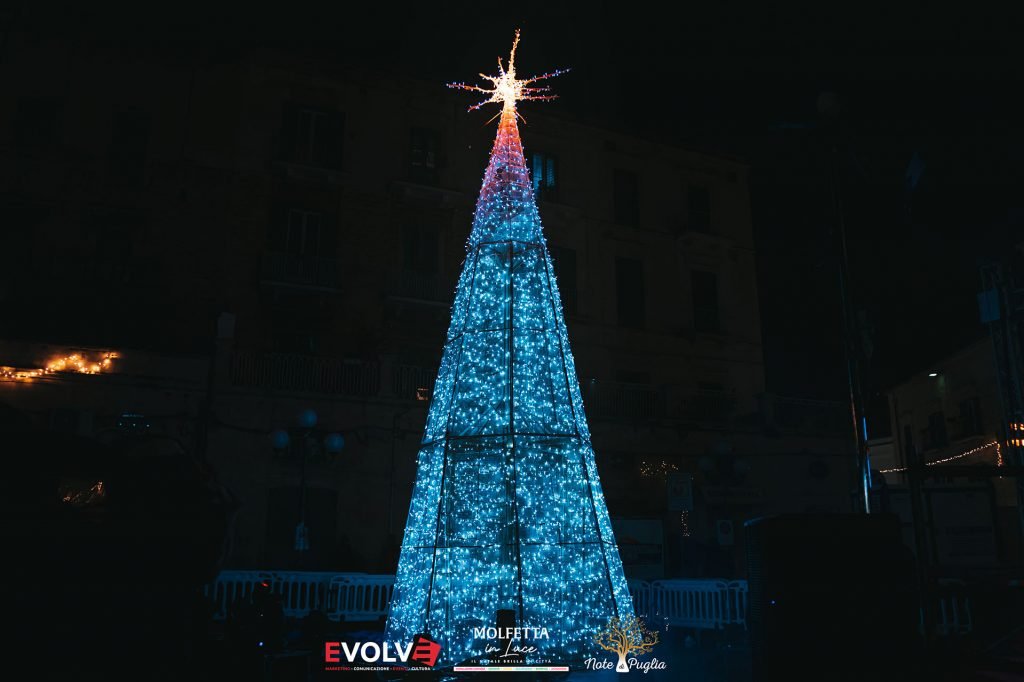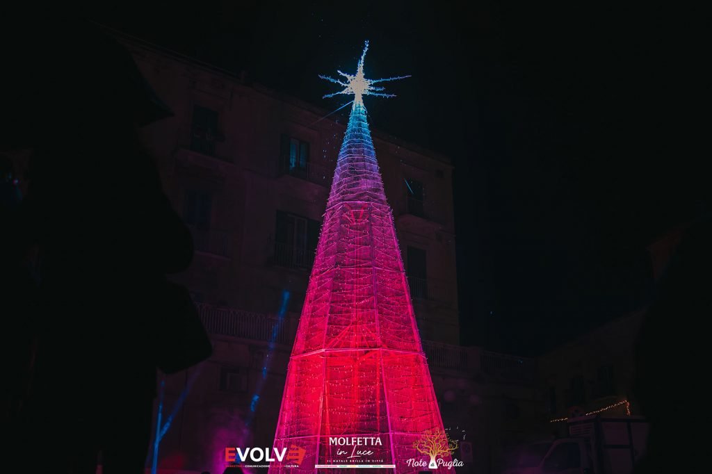 L’accensione di un maestoso albero di Natale, davanti alla Cattedrale di Molfetta, da ufficialmente il via alle festività, avvolgendo la città in un’atmosfera magica per oltre un mese. Uno spettacolo suggestivo, con musica, giochi di luce, animazione per bambini e rappresentazioni teatrali, trasformerà la piazza in un palcoscenico di emozioni.