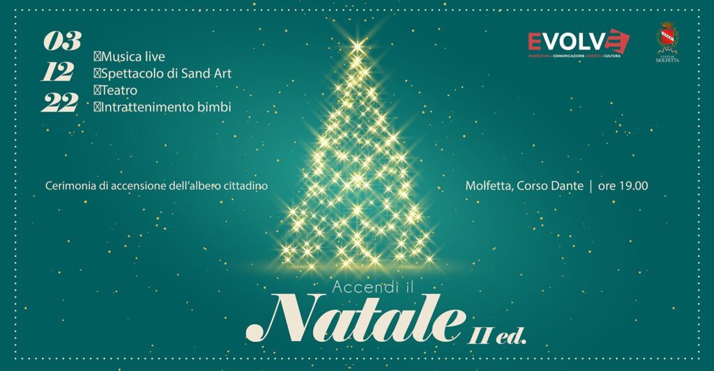 L’accensione di un maestoso albero di Natale, davanti alla Cattedrale di Molfetta, da ufficialmente il via alle festività, avvolgendo la città in un’atmosfera magica per oltre un mese. Uno spettacolo suggestivo, con musica, giochi di luce, animazione per bambini e rappresentazioni teatrali, trasformerà la piazza in un palcoscenico di emozioni.