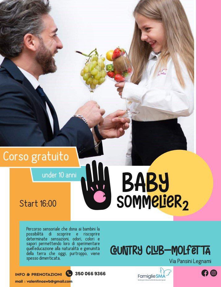 “Baby Sommelier”, il percorso sensoriale dedicato ai più piccoli, arriva sabato 4 settembre 2021 al “Country Club” di Molfetta, grazie alla collaborazione tra l’agenzia di marketing, comunicazione ed eventi Evolve di Danilo Sancilio e il sommelier Valentino Faccitondo.