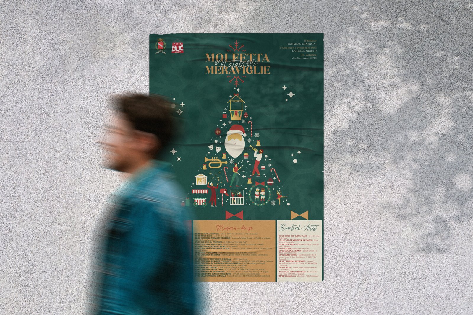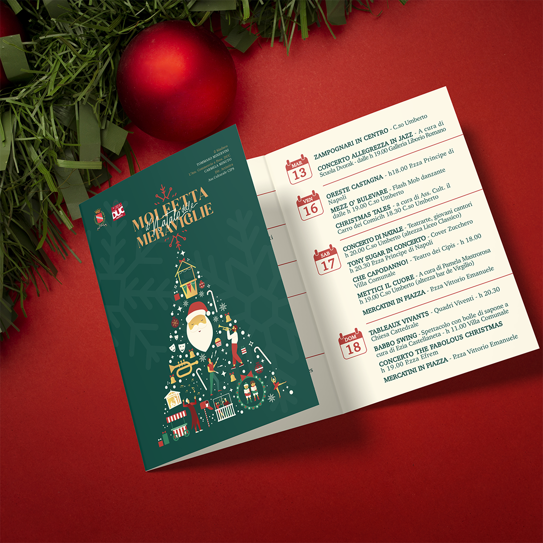 Sono stati realizzati inoltre manifesti pubblicitari 70x100, grafiche per totem e brochure illustrative del programma natalizio della città. E' stata ideata un'azione di volantinaggio al fine di aumentare la copertura dell'evento e una conferenza stampa di presentazione del progetto.