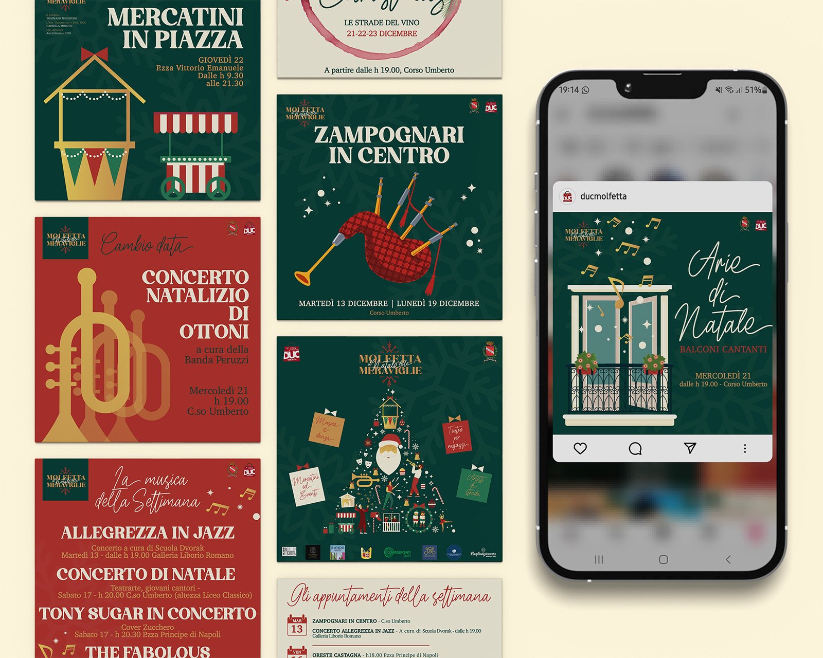 Per il Distretto Urbano del Commercio di Molfetta, nel 2021, la nostra agenzia ha curato una strategia di comunicazione digitale volta a promuovere il tessuto commerciale cittadino e rafforzare la connessione tra attività locali e cittadini, attraverso la definizione di un piano social strutturato con campagne sponsorizzate su META, finalizzate a incrementare la visibilità delle iniziative e incentivare la partecipazione pubblica.