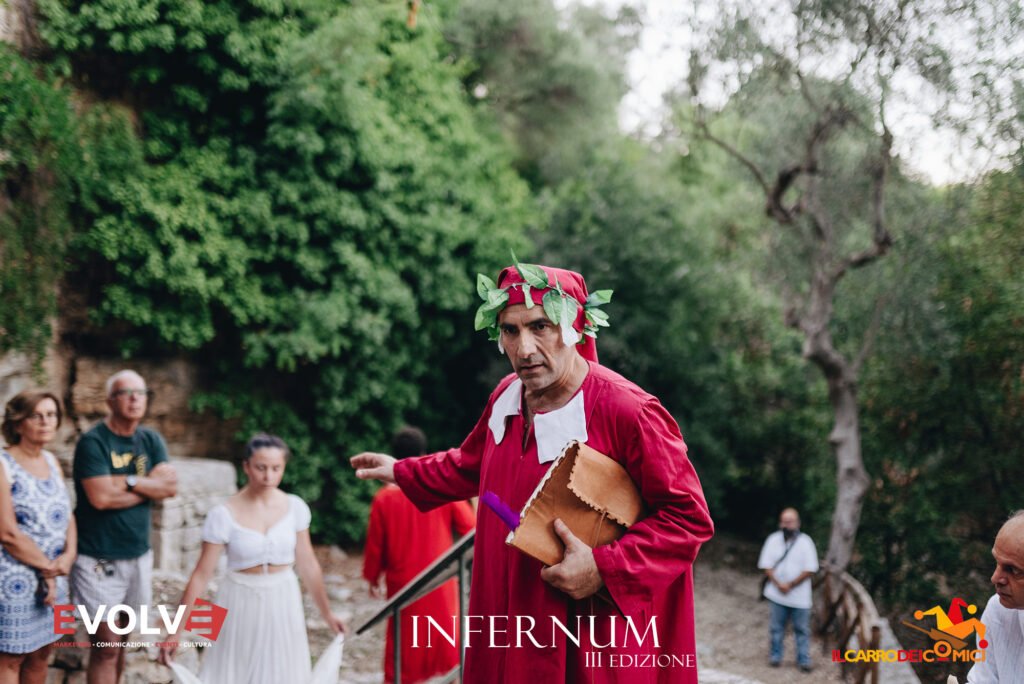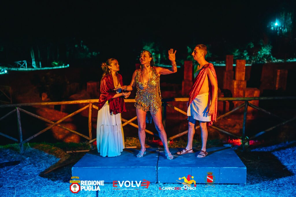 Il Pulo diventa scenario e complice di una narrazione poetica; non solo sfondo ma sostanza e palcoscenico naturale nel quale il pubblico potrà incontrare personaggi-archetipi come Caronte, Paolo e Francesca, Conte Ugolino, Minosse, Ulisse e con la straordinaria partecipazione nelle vesti di Cleopatra di Eva Robbin’s.