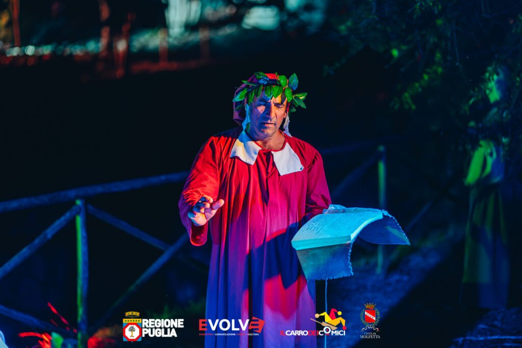 Il Pulo di Molfetta, straordinario anfiteatro naturale, diventa palcoscenico di un’esperienza immersiva tra poesia e teatro, dove il pubblico incontra figure emblematiche dell’Inferno dantesco in un’atmosfera suggestiva e coinvolgente..