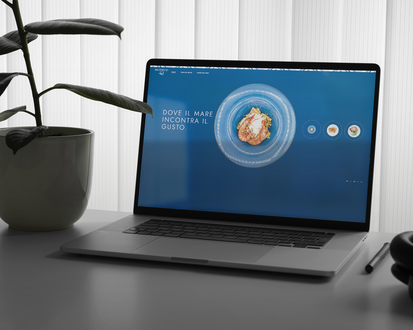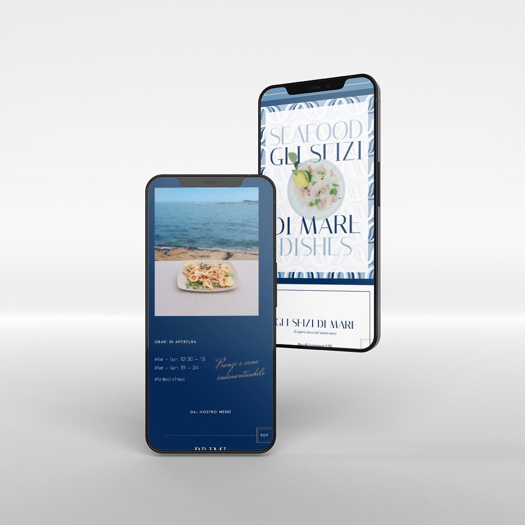 Abbiamo pensato, inoltre, un intervento completo di rinnovamento dell’identità visiva e della presenza digitale, partendo dalla progettazione di un nuovo logo in grado di rappresentare con eleganza e personalità l’anima mediterranea del locale, fino alla realizzazione grafica del nuovo menù. A completamento del progetto, abbiamo sviluppato un sito web su misura, dal design essenziale e raffinato, pensato per trasmettere l'armonia e l'eleganza del ristorante.